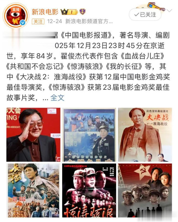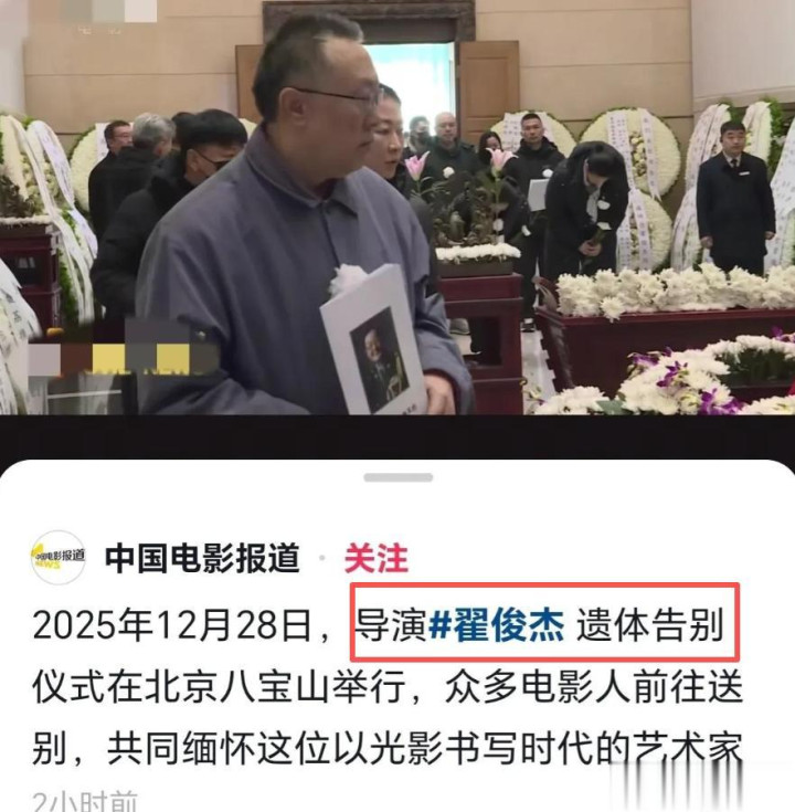 据了解,12月29日翟俊杰导演的追悼会在北京八宝山举行,来送别的粉丝还有娱乐圈的后辈们来了很多人。